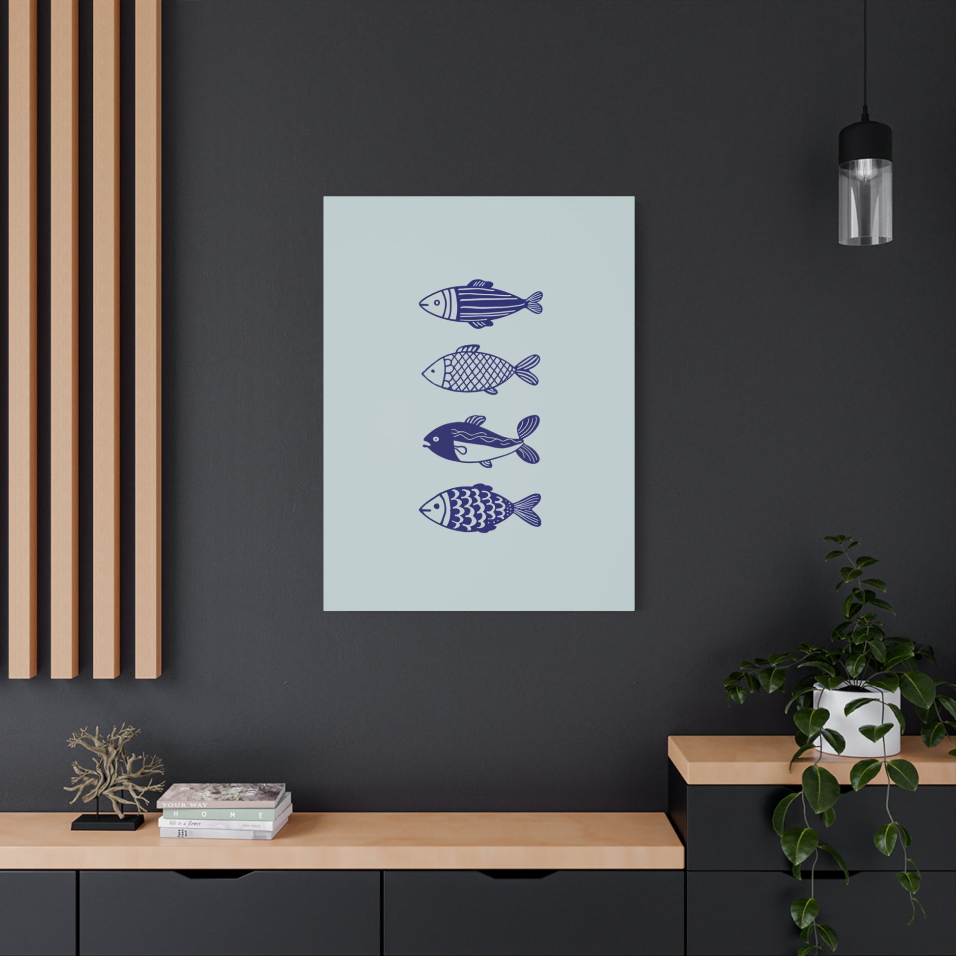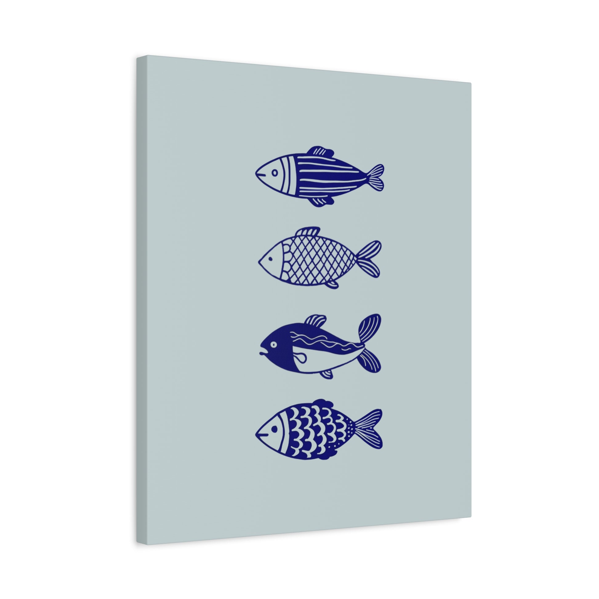 Our hand-designed blue fish canvas print is the perfect decor for your space. Featuring four unique fish this print is perfect for those who appreciate nature and want to bring a touch of the outdoors into their living space. Ideal for kitchen and beach decor, fishers, and anyone who enjoys a pop of color in their home. Perfect gift for birthdays, housewarmings, and holidays! Follow @TheArgyleMarket on Facebook/Instagram/TikTok for more!