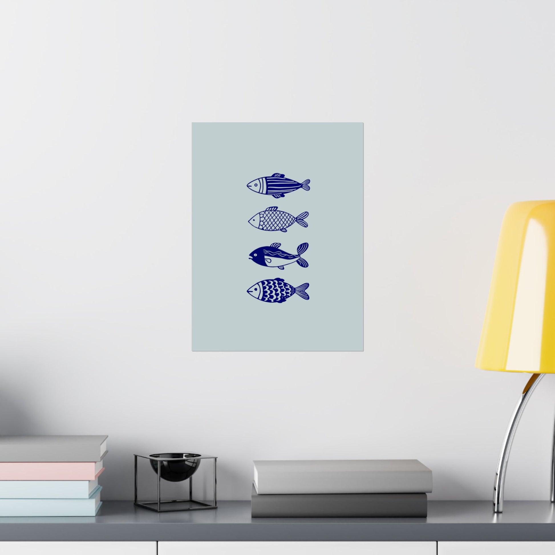 Our hand-designed blue fish print is the perfect decor for your space. Featuring four unique fish this print is perfect for those who appreciate nature and want to bring a touch of the outdoors into their living space. Ideal for kitchen and beach decor, fishers, and anyone who enjoys a pop of color in their home. Perfect gift for birthdays, housewarmings, and holidays! Follow @TheArgyleMarket on Facebook/Instagram/TikTok for more!