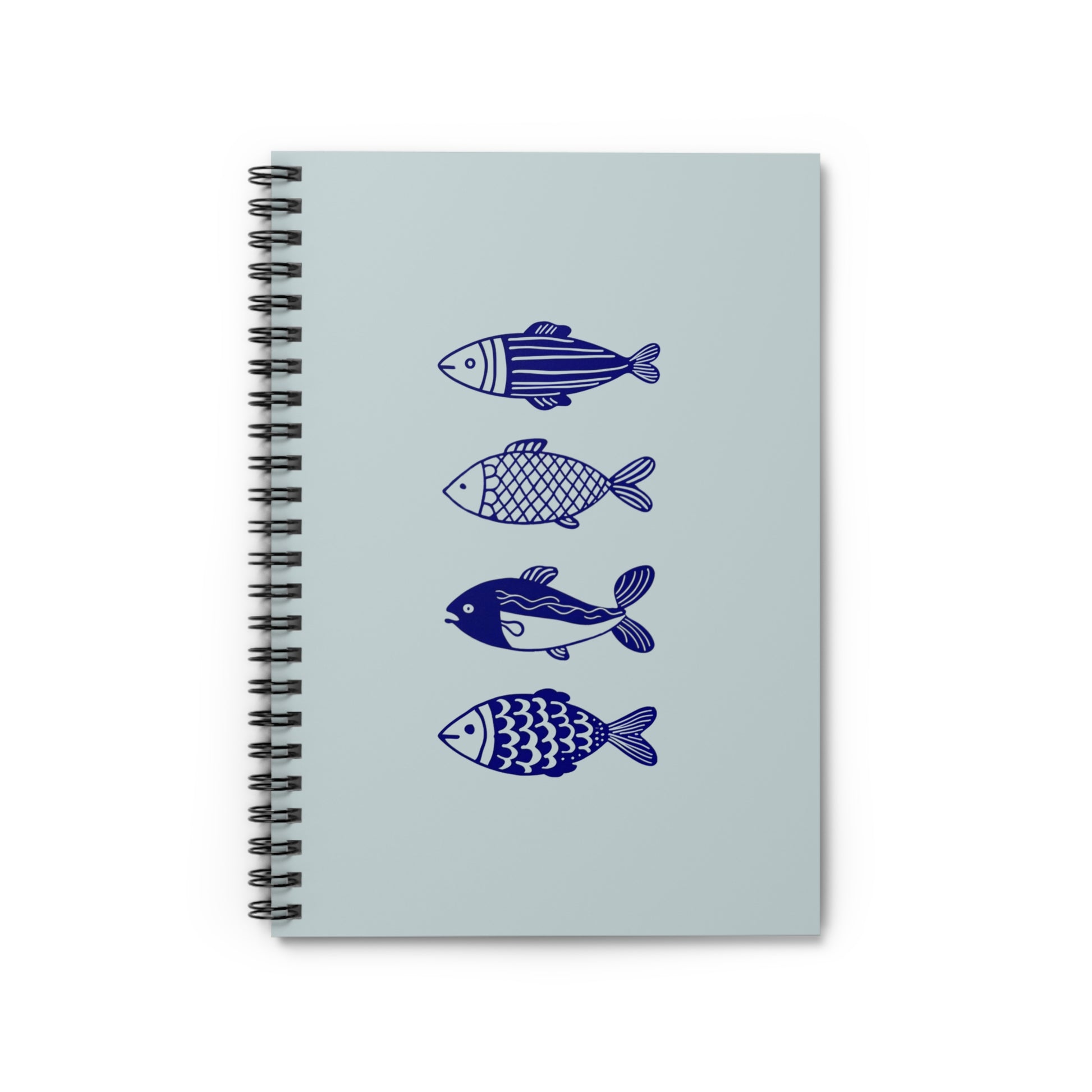 Introducing our Hand-Designed Blue Fish Spiral Notebook. Featuring a minimalistic blue fish artwork, this notebook brings that ocean vibe that's great for jotting down thoughts, ideas, and inspirations. Its compact size of 6" x 8" makes it an ideal companion for students, professionals, or anyone looking to capture fleeting moments of creativity. Perfect for daily journaling, note-taking during classes, or even as a thoughtful gift for friends and family. This notebook shines during occasions like back-to-school season, birthdays, or as a charming stocking stuffer during the holidays. Embrace a sense of tranquility as you fill each ruled page with your thoughts, letting the beauty of the design inspire your writing journey.