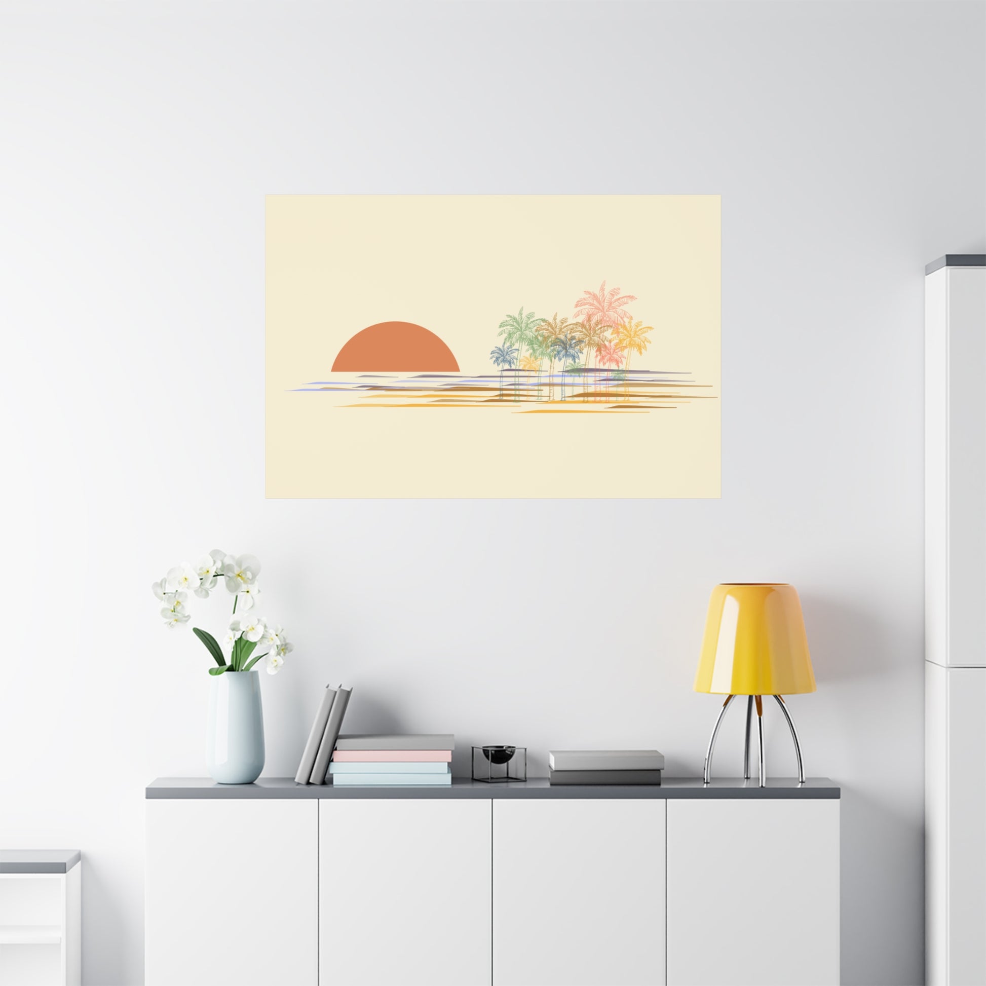 - Unique Palm Trees Sunset Hand-Designed Artwork.